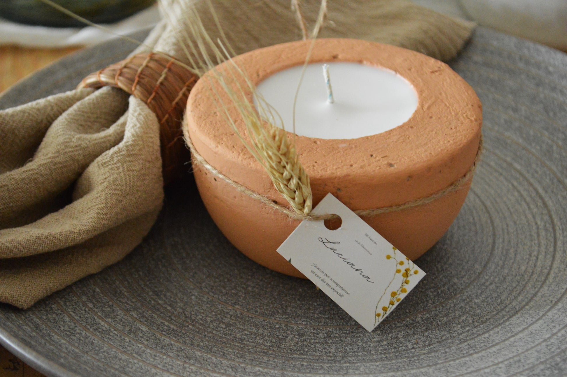 Vela Ovalada en Contenedor de Concreto con 90 ml de Cera de Soya - Esencia y Tono a Elección